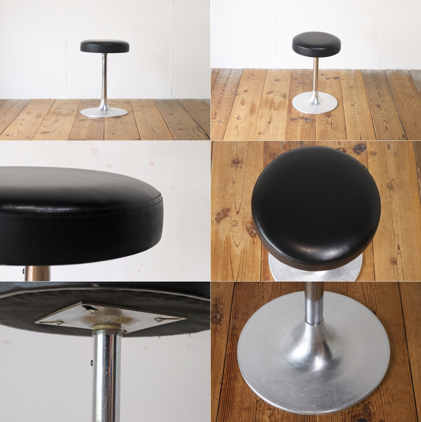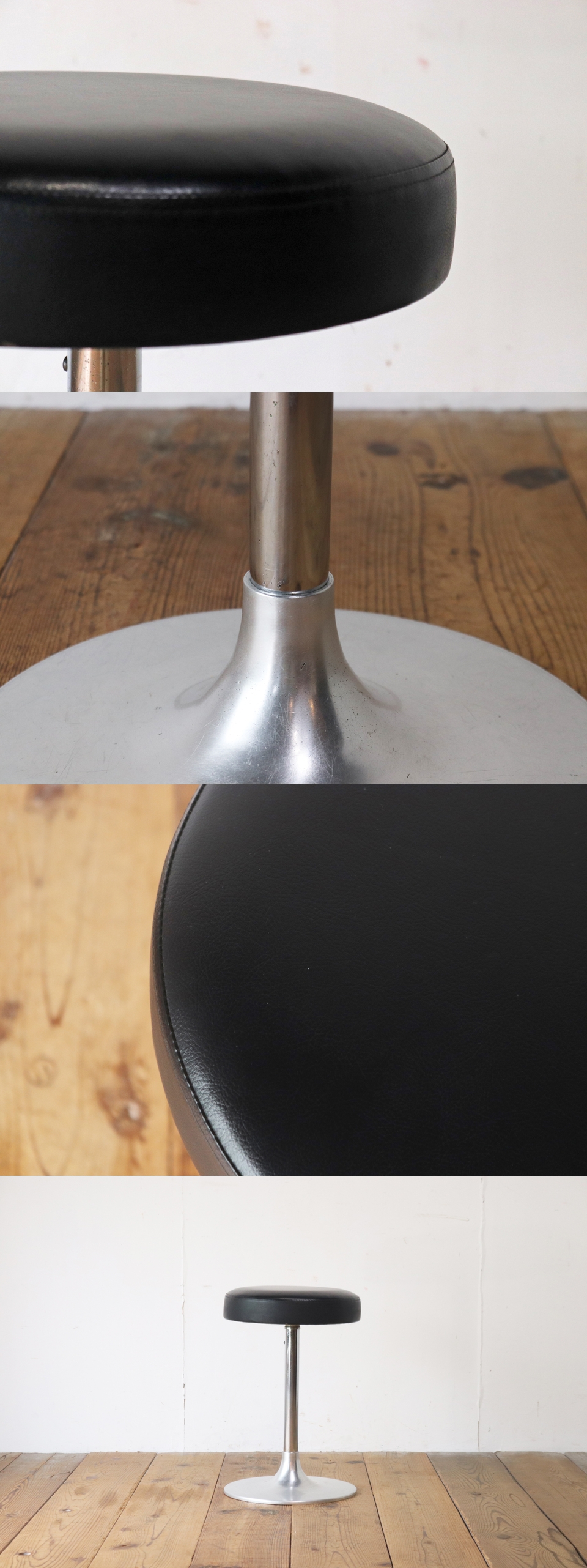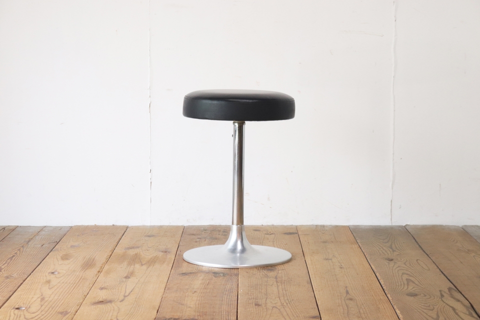 在庫8脚 回転スツール 椅子 カフェ 喫茶店 食堂 合皮 レザー 黒 ブラック 脚 金属 店舗什器 1脚/U.S.アンティーク/PJS29240 收藏