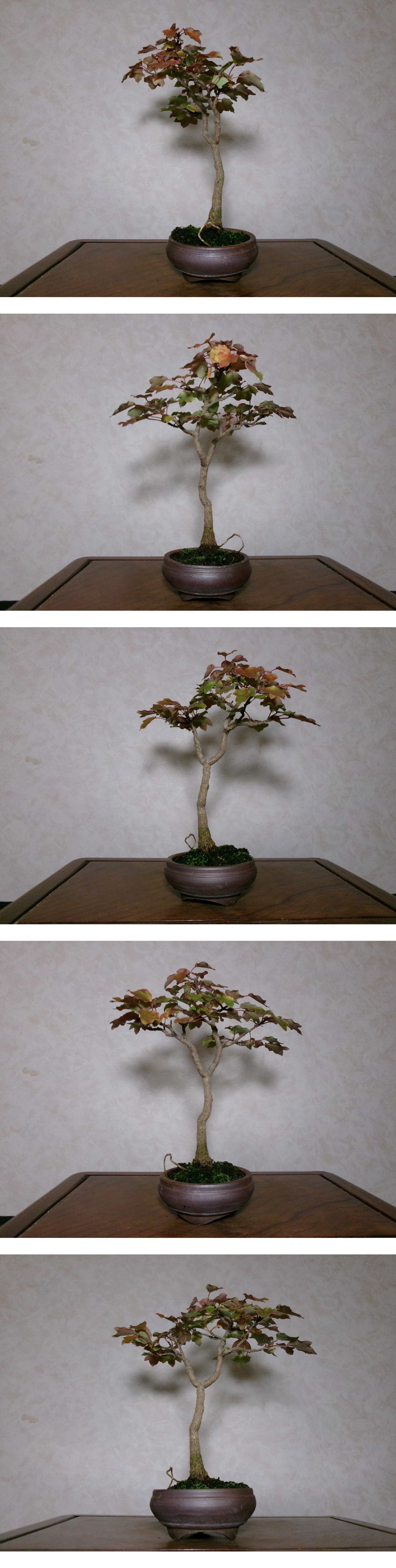 独特の優しい葉性で人気の高い宮様楓です。持ち込みは古く、細身ながら幹肌にはしっかりと古さも出てきています。足元も良く、立ち上がりりからしなやかで洒落た幹模様となっており、持込によって葉性も小さくなりとても風情があります。このままでも十分飾って楽しめるでしょう。是非お勧めです。