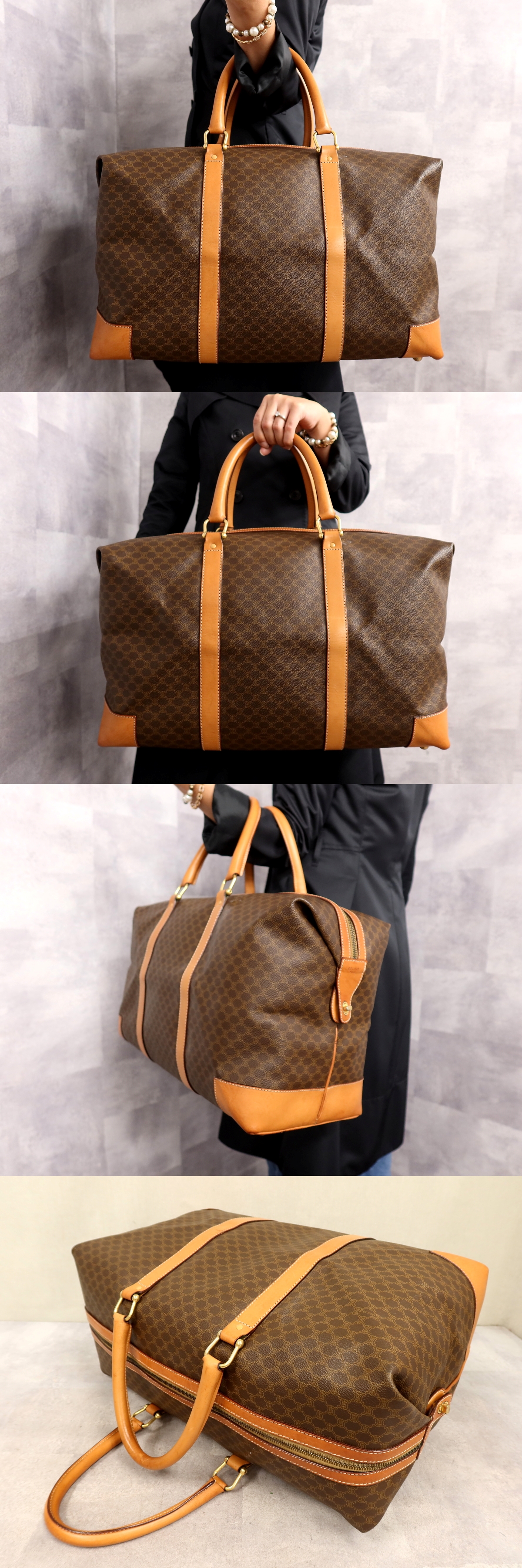 ●超美品●CELINE セリーヌ●マカダム●ロゴ型押し●PVC カーフ レザー 本革●ボストン バッグ●ブラウン系●G金具●ヴィンテージ●Js62374 收藏