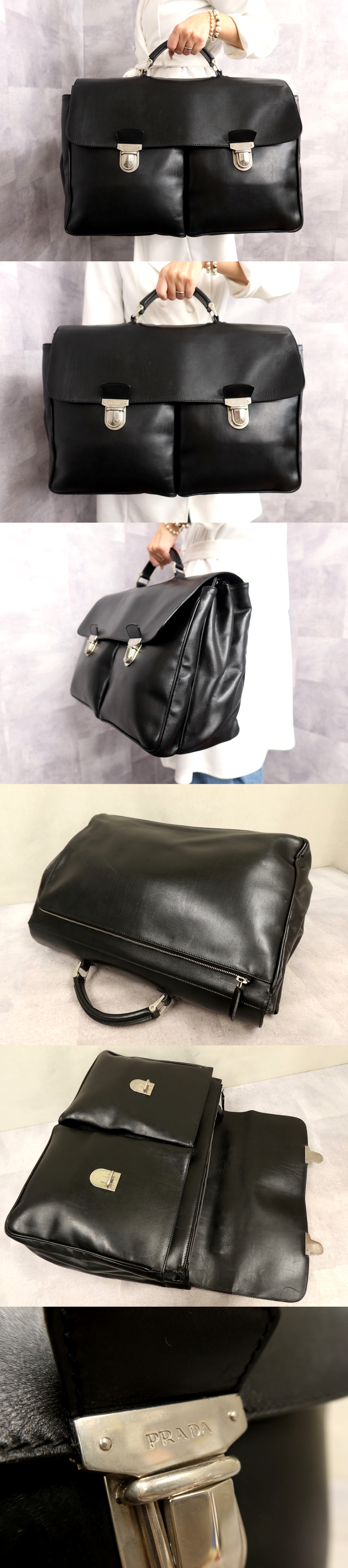 ●超美品●PRADA プラダ●メンズ●カーフ レザー 本革●ビジネス バッグ●黒●シルバー金具●イタリア製●ヴィンテージ●A4 書類●Js62393 收藏