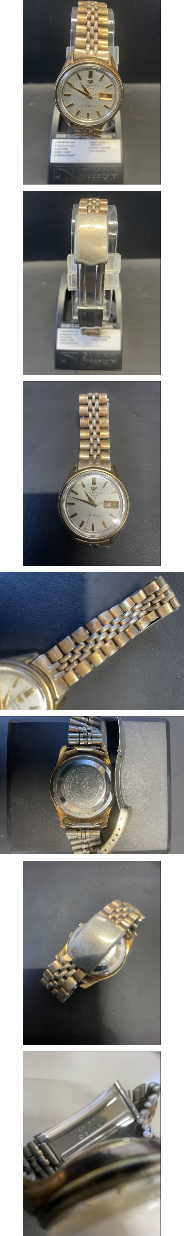 | 数ある中よりご覧頂きありがとうございます。 ◆譲り受けましたお品を現状引き渡しにて出品いたします。 ◆検品は十分に行っておりますが、稀に見落としがある場合がございます。出来る限りの記載はしておりますが、予めご了承くださいませ。 ◆可能な限り早めの発送を心がけておりますが、出荷までに日数を要する場合がございます。お急ぎの方は入札をお控えください。 ※同梱ご希望の際は必ず【まとめて取引】にてお手続きくださいませ※ こちら画像の腕時計になります。 自動巻き式で、巻いたら稼働することを確認しました。 が、長期自宅保管品の為、不具合が生じる可能性がございます。 その為ジャンク品として出品させて頂きますので、ご了承いただける方のみ入札をお願いします。 使用や保管に伴う傷、錆、変色などございますので、神経質な方はご遠慮ください。 中古品ですので使用感等ございます。 状態等は画像をご覧になられましてご判断ください。 上記の事からジャンク品として出品いたしますので、ご了承の上でのご入札をお願いいたします。 ・ジャンク品だとご理解の上、ご入札をお願い致します。 ・ノークレーム、ノーリターンですよろしくお願い致します。 ・画像のものが全てです。 ・ジャンク品は安くお届けするため簡易梱包となります。 | |||