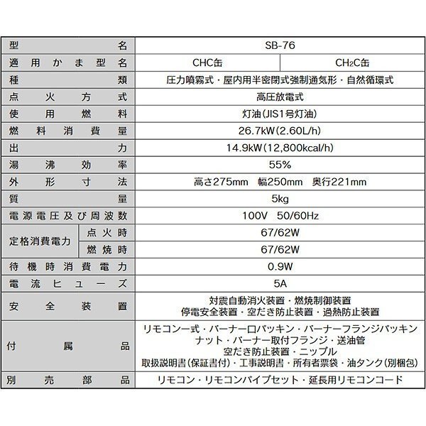 長府 50Hz専用バーナー SB-76 マキ焚兼用石油風呂釜CHS-6 CH2S-6用 CHC缶 CH2C缶用