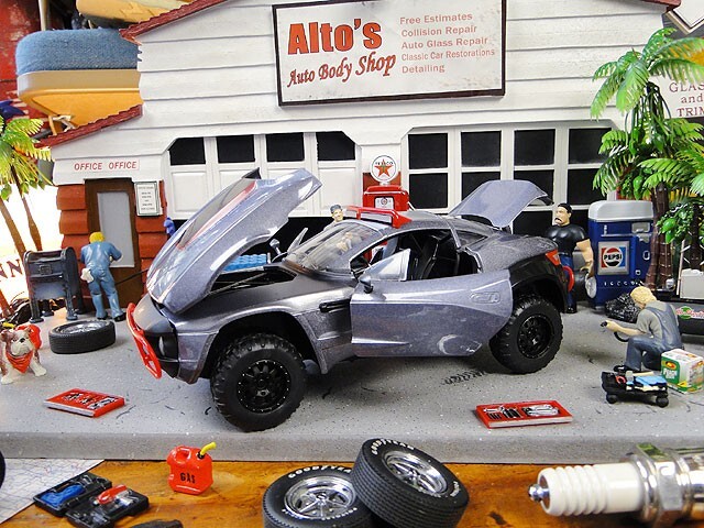 このシリーズはドチューンされたマシンばかりの映画だけに、ボンネットを開けっぱなしにして飾ったりも似合うので、小さなスペースを見つけて、そこへドミニクのガレージシーンを再現するなんて演出も楽しいの!