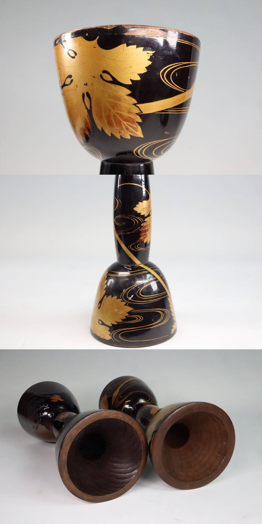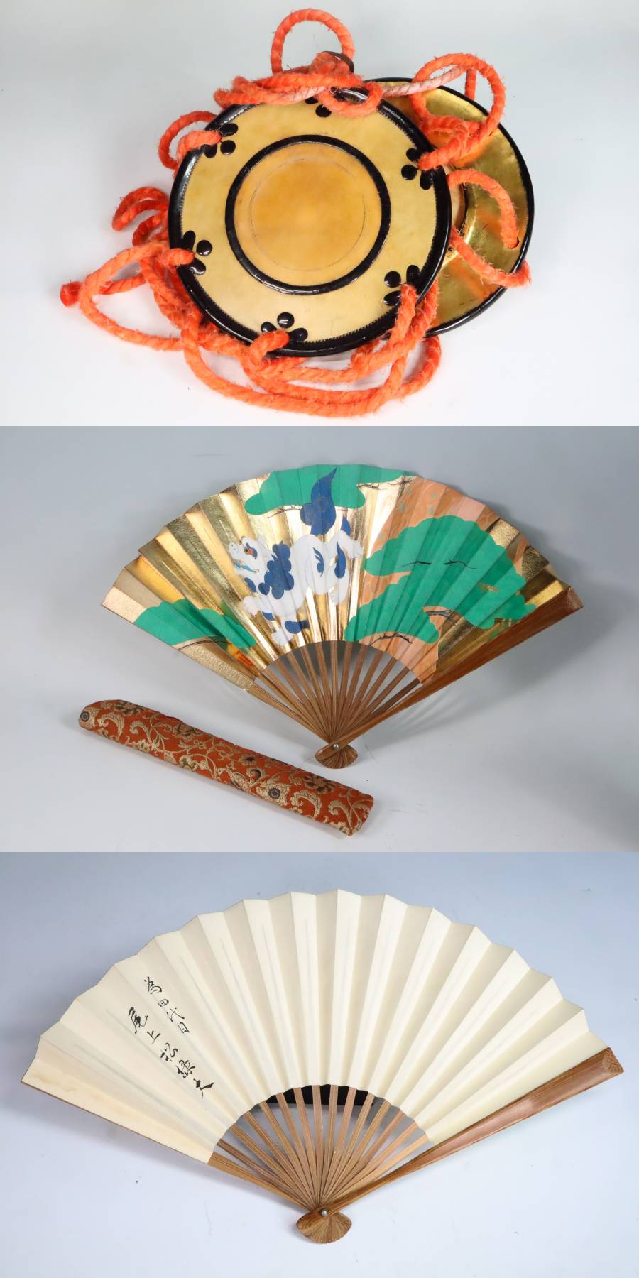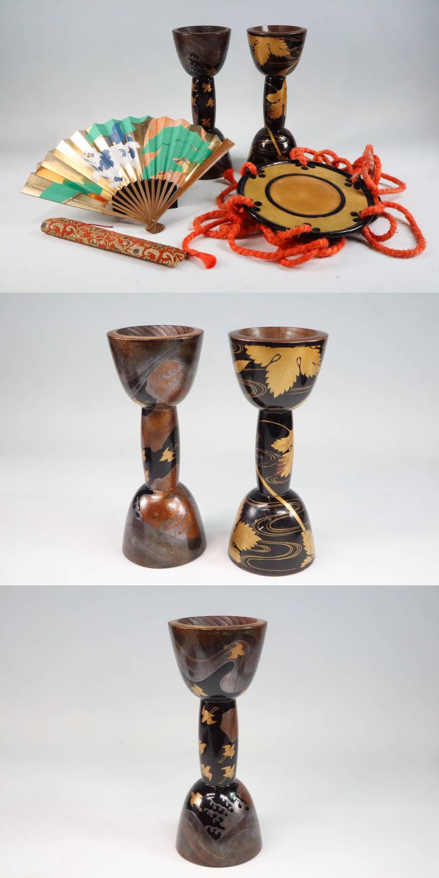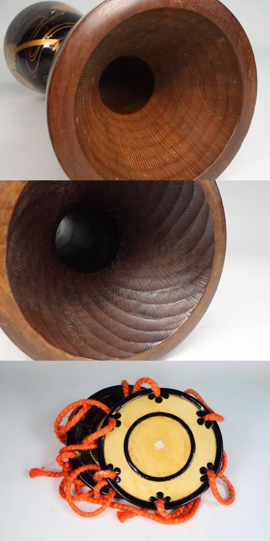 ◇雅◇ 時代 和楽器 漆塗蒔絵 金彩 鼓 小鼓 鉋目 鼓胴 漆芸 和太鼓 唐物骨董 扇子 獅子図 落款 サイン /HK.25.10 [B150] OWU 收藏