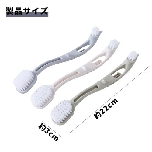 【ユニークなデザイン】大小2つのブラシが付いています。広範囲の洗いニーズに応えながら、細部の洗いも可能です。ブラシのハンドルは曲しており、よりいい握り感じを実現します。ブラシの柄は先端が尖ったデザインになっており、靴底についた泥などの硬いものを取り除くことができます。ハンドルには穴が付いているので、使用しないときは吊り下げて保管でき、スペースを節約できます。