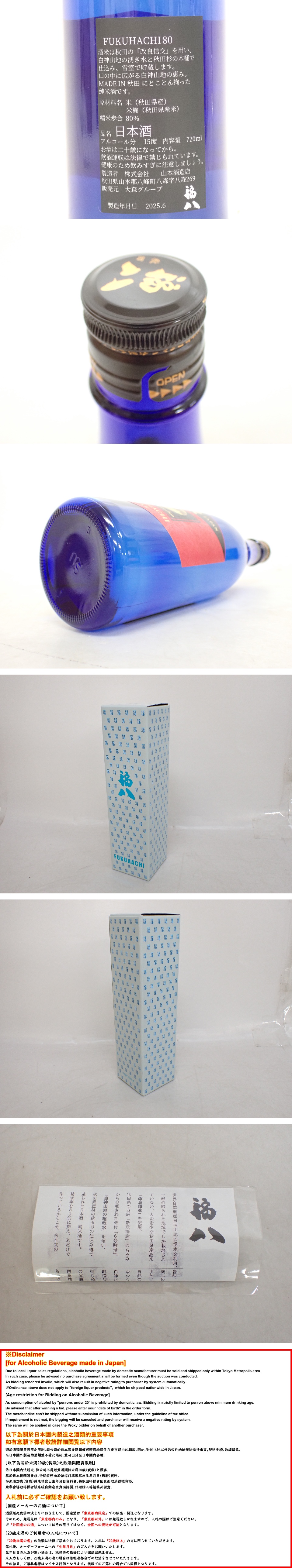 | 秋田 福八 FUKUHACHI 80 純米酒 ジョエル・ロブション720ml 元箱付 ÷ 74189-1 | ||||||||||||||||||||||||||||||||||||