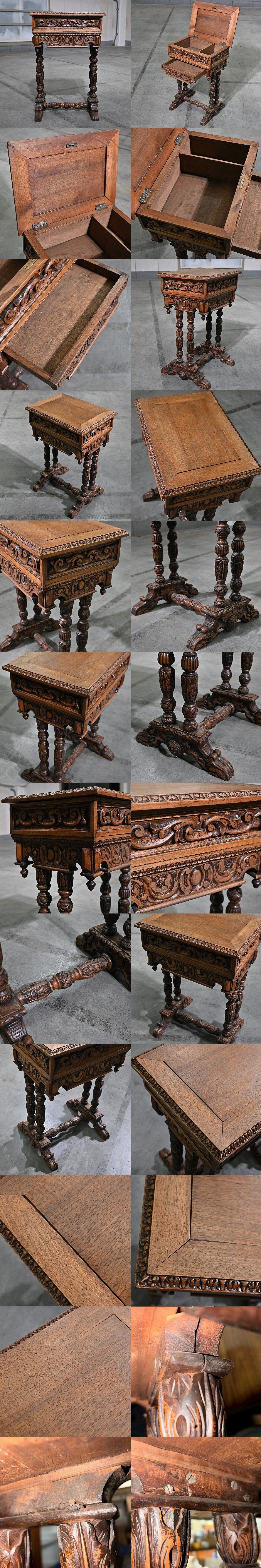 フランスアンティーク ルネサンス様式 サイドテーブル オーク無垢材 彫刻 飾り台 花 机 作業 電話 ビンテージ ヨーロピアン 收藏