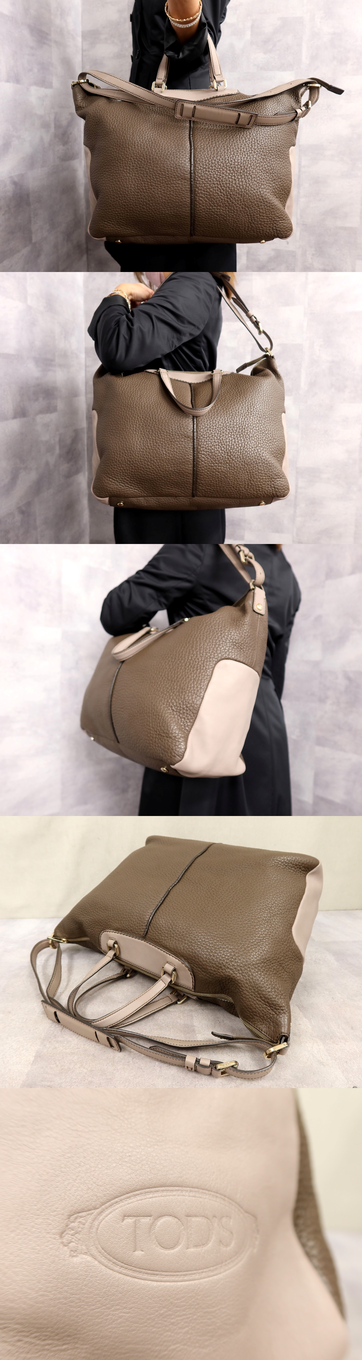 ●超美品●TODS トッズ●ロゴ型押し●カーフ レザー 本革●2way トート バッグ●ブラウン グレージュ●ゴールド金具●肩掛け●A4●Js63036 收藏