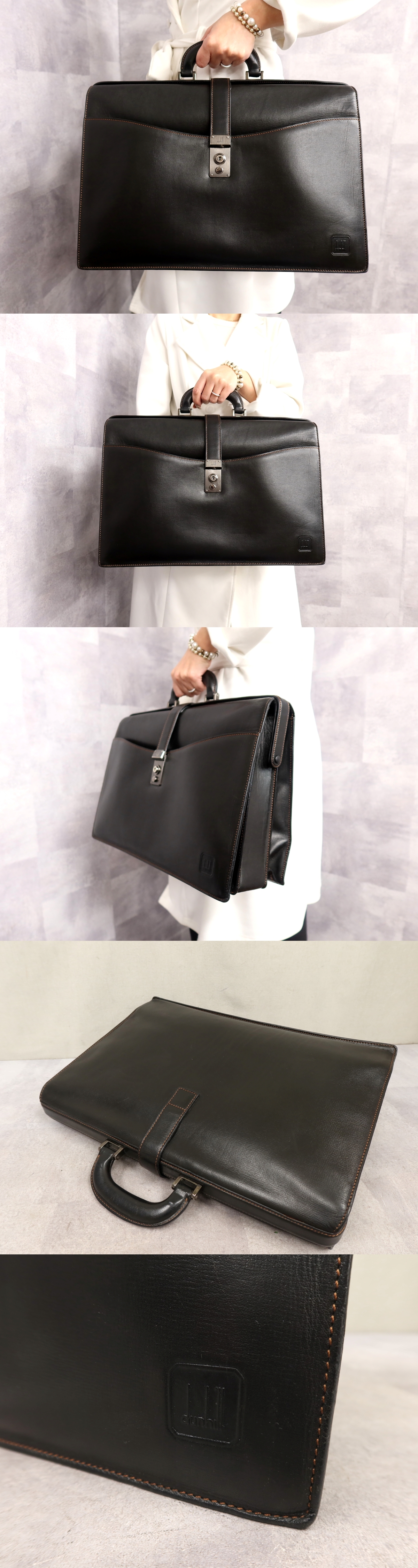 ●超美品●dunhill ダンヒル●メンズ●エンボスロゴ●カーフ レザー 本革●ダレス ドクター ビジネス バッグ●黒●SV金具●A4●Js63558 收藏