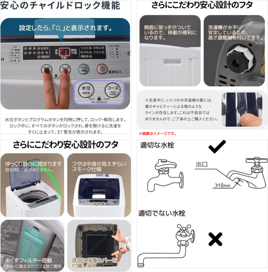 【商品特長】 ◆わかりやすく操作パネル ◆えらべる洗濯コース8種類 ◆部屋干しモード ◆便利な予約機能 ◆キレイな洗濯槽 ◆安心のチャイルドロック機能 ◆選べる4段階の水位 ◆安心設計のフタ 糸くずフィルター搭載 底部に保護カパー付属 R-1の洗濯機をお買い上げのお客様に! 業務用洗濯槽クリーナー1回分をおまけでお付けします! 業務用ならではの洗浄力をお試しください! 洗濯槽クリーナーのみでも販売してます♪ | |||||||||||||||||||