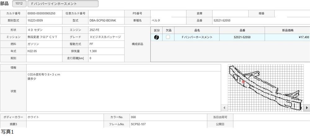 H22年 SCP92 ベルタ フロントバンパーリインホースメント /送料 SS/905250 收藏