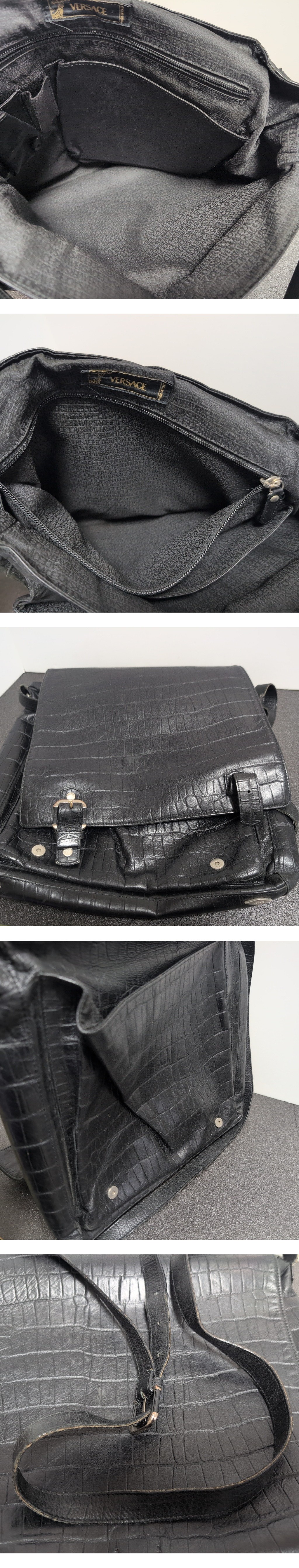 ジャン二 ヴェルサーチ クロコ 型押し ショルダー バッグ 黒 ブラック 肩掛け メッセンジャーバッグ GIANNI VERSACE v121 收藏