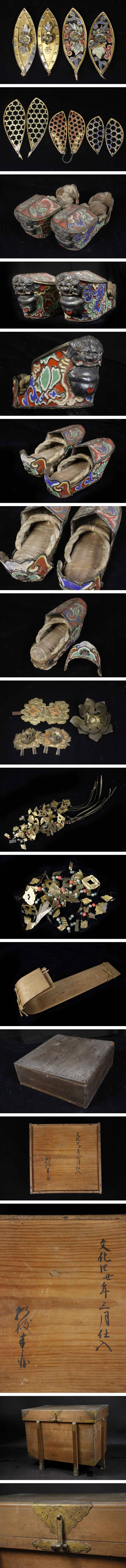 25092007* * * 商品詳細 * * * ここでしか出逢うことのできない唯一の美をご紹介させて頂きます。 鮮やかな色彩、豪華な金色と華やかな輝きを放つ神事用飾りのご紹介です。 獅子の玉眼は鋭い眼差しをしており力が込められています。 どれも豪華に造られており、仕上がり当時は華々しい姿だったことが伺えます。 時代を経てもなお衰えぬ鮮やかさに包まれており、 神聖で神秘的な雰囲気を感じさせる逸品です。 この機会に是非お求めください。 ■商品内容/飾一式、箱、櫃 ※写真にあるものが全てです。 ■サイズ/櫃:横66cm×高53cm×奥行42㎝ ■状態/経年による傷み、スレ、キズ、サビ、割れ、欠け、剥げ、 パーツ外れ、パーツ欠損等がございます。 飾りのパーツが折れて付けられなくなっている物があります。 ※写真にてご確認、ご了承の上ご入札下さい。 ![]() ![]() !かんたん決済 * * * 発送詳細 * * * 入金確認後3営業日以内に発送致します。 ※直接引き取りも可能です。 60~160サイズにつきましては 佐川急便、ゆうパックのどちらかで発送いたします。 ゆうパック発送の場合、弊社の発送日から追跡サービスに問合せ番号が反映されるまで 約1日ほどお時間がかかりますのでご了承下さい。 * * * 注意事項 * * * 運送中の破損があった場合は速やかに当社までご連絡下さい。 保険を利用するのに受取連絡後に運送会社による現場での破損状況確認が必要となります。 勝手に返送されますと保険の適用外となりますのでご注意ください。 * * * * * * お問い合わせ:082-236-8669 |