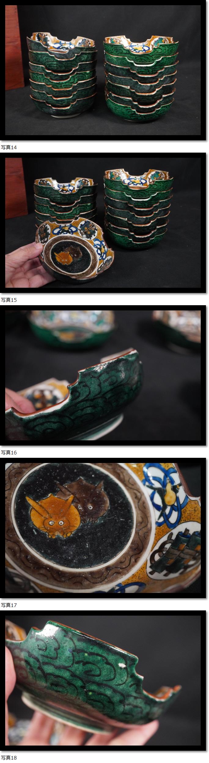 九谷 うさぎ 兎 皿 14枚 色絵 青手 古九谷 煎茶道具 茶道具 骨董 時代 古美術 盛鉢 小鉢 菓子鉢 九谷焼 珍品 收藏