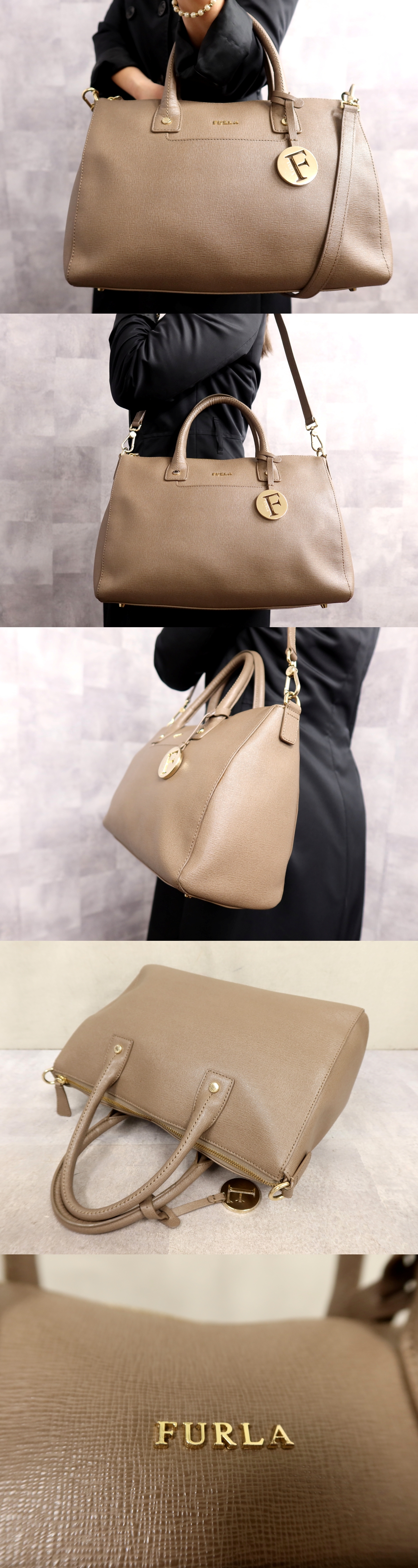 ●超美品●FURLA フルラ●リンダ●カーフ レザー 本革●2way ハンド バッグ●ローズグレー●ゴールド金具●腕掛け●B5 書類 収納●Js65160 收藏