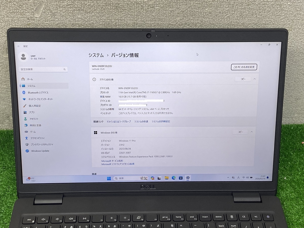 ノートパソコン中古 dell latitude 3520 i7 11th gen laptop i7 第11世代 ノートPC i7-1165G7 メモリ16GB NVMe NVMe 256GB 15.6 フルHD PC