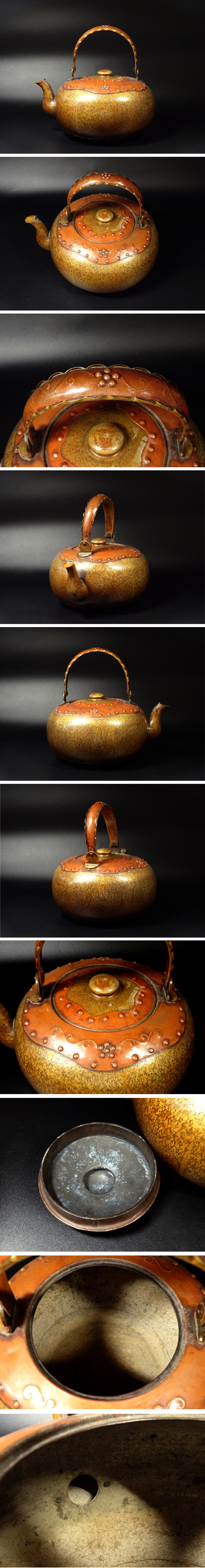 敬逢 金工家 金屋五郎三郎造 鎚起銅花唐草紋 水注 銅瓶 湯沸 銅蟲 銅虫 重量717g 金谷五郎三郎 細密彫細工 傑作 煎茶道具 收藏