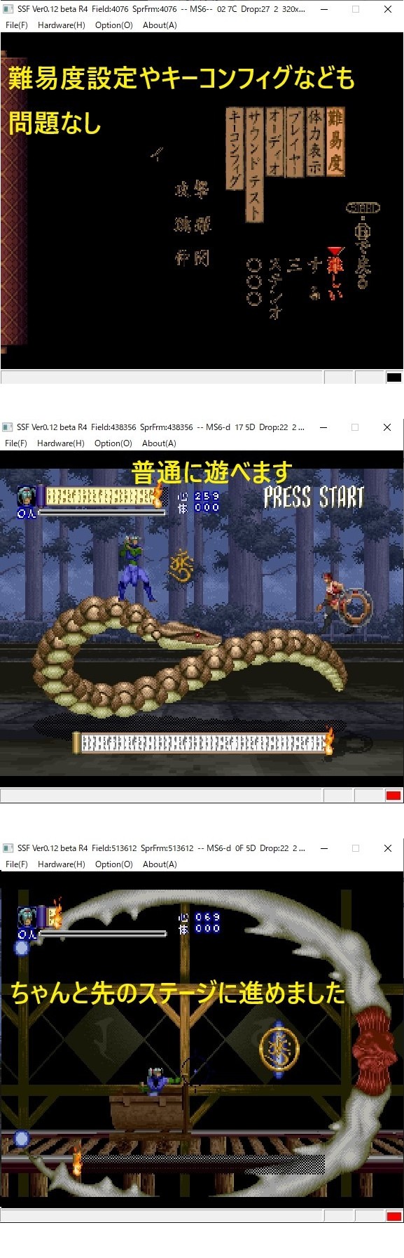 友人は当時「マスターなので中身は製品版とほぼいっしょだよ」と言っていましたが、自分は最後までプレイしていないので断言はできません。今回はPC用サターンエミュ「SSF」での起動確認を実施し、動作に関して問題ないことを確認しました(ただし、PCの性能に依存するのですべての環境での動作を保証するものではありません)。
