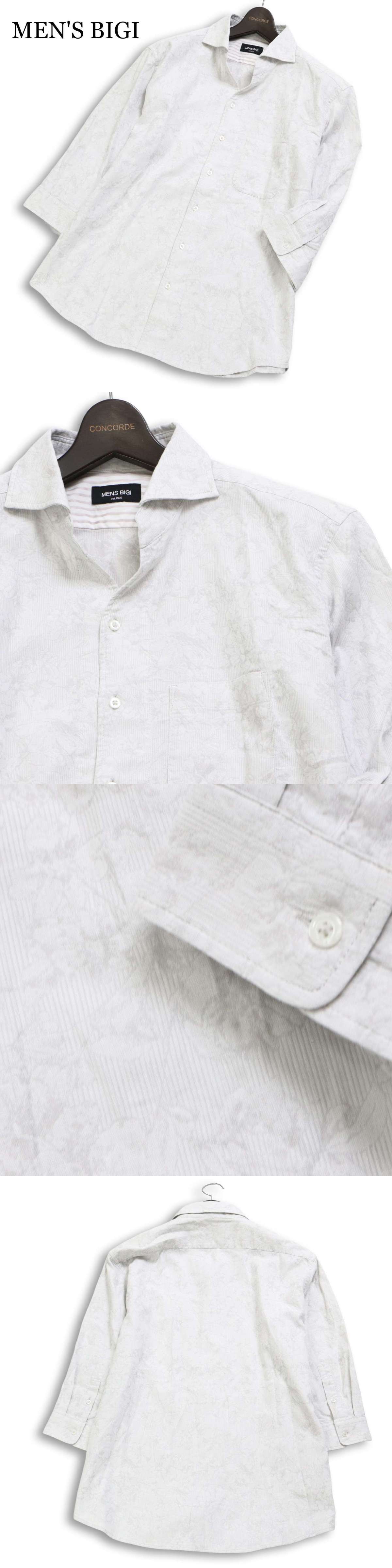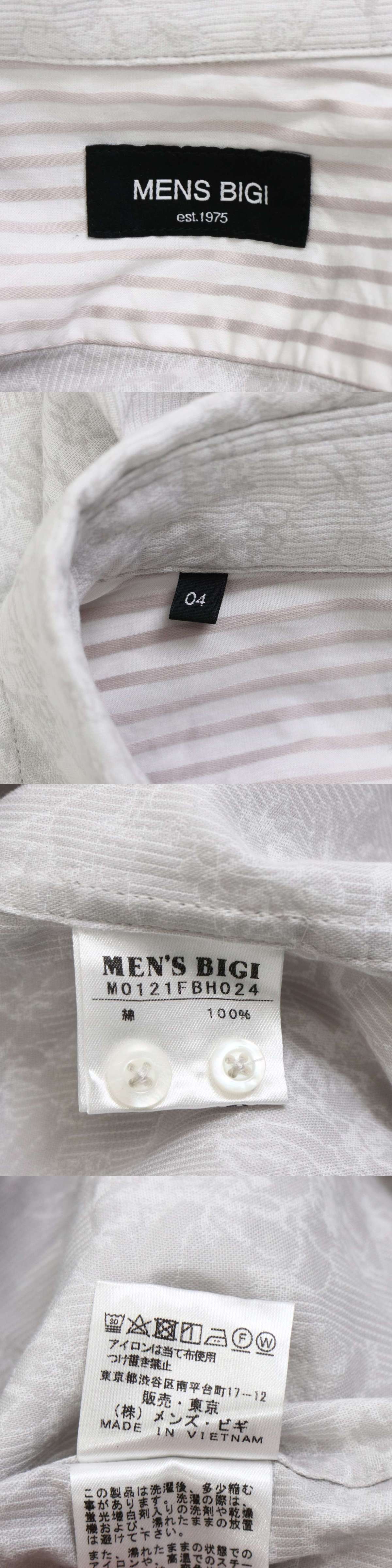 MENS BIGI メンズビギ 春夏★ 7分袖 フラワー ストライプ ジャガード カッタウェイ シャツ Sz.4 メンズ 收藏