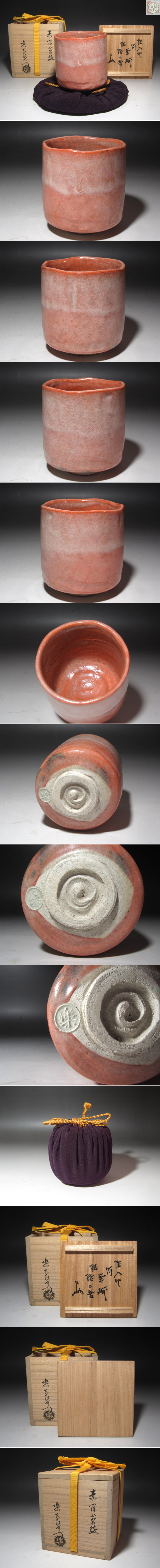 ☆ 楽吉左衛門 十三代 惺入 赤筒茶碗 「鈴の音」 表千家十三代即中斎の花押がございます☆y648 收藏