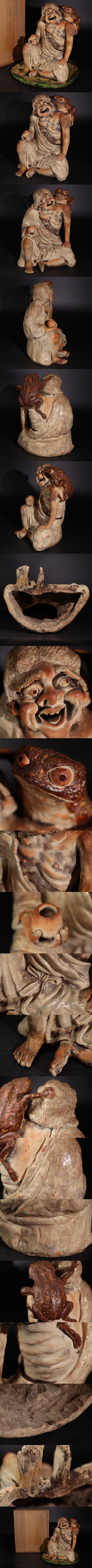 時代 陶器製 蝦蟇仙人 木箱付 / 蛙 仙人 陶器人形 検索: 中国美術 石湾陶磁器 二六 水月 .G3802 收藏