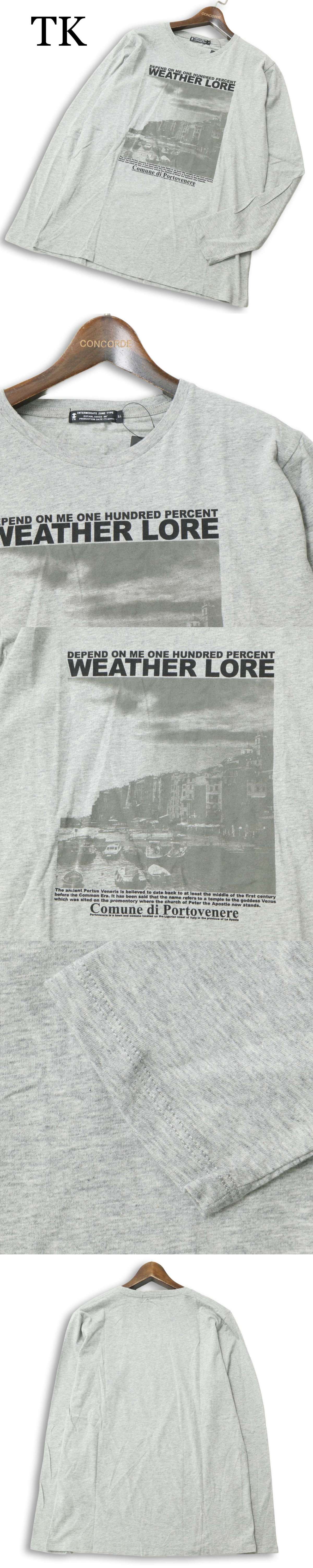 【新品 未使用】 TK タケオキクチ グラフィック プリント★ 長袖 カットソー ロンTシャツ Sz.LL メンズ グレー 大きいサイズ 收藏