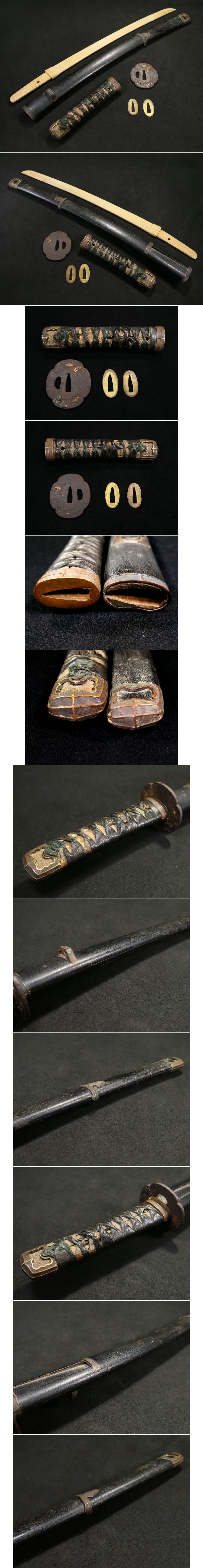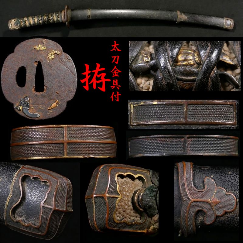 ウブ太刀拵 揃い金工金具付 「縁頭・鯉口・責金物・瓦金・鐺」:赤銅魚々子地 鍔:歌人図 目貫:瓜図 拵え全長:66cm 【安値出発】k083 收藏