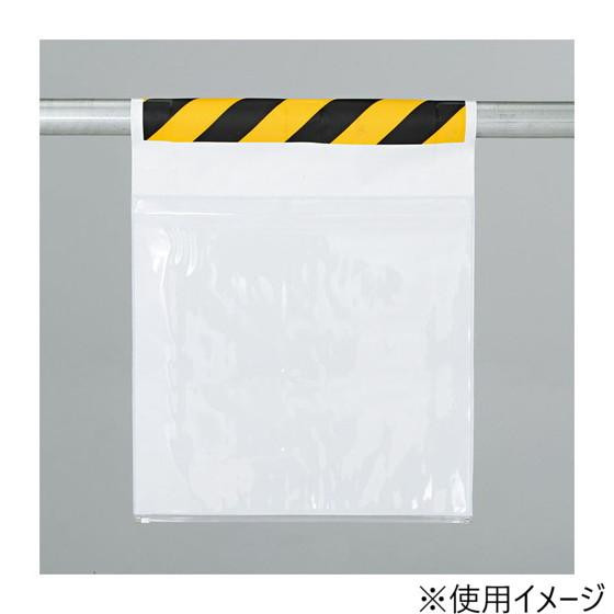 | 自作の表示用紙を、屋外でもしっかり掲示できます。下部ファスナー加工により、雨水が浸入しにくい状態です。 |