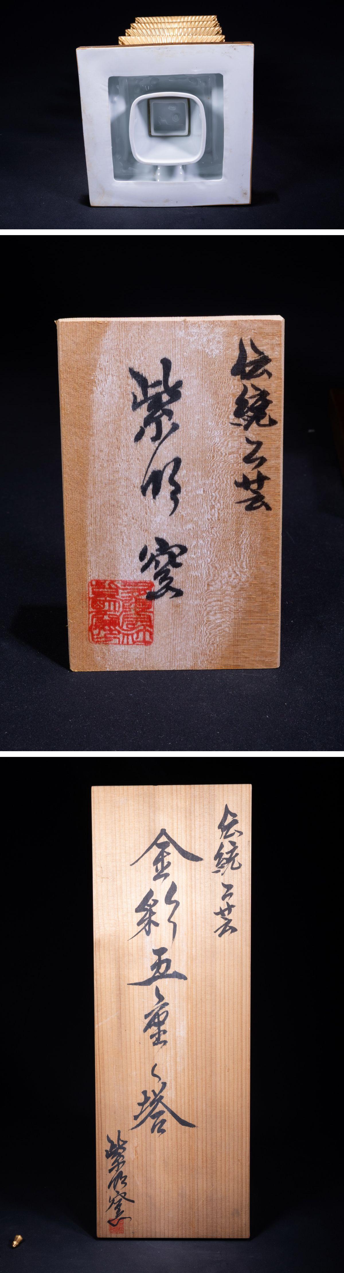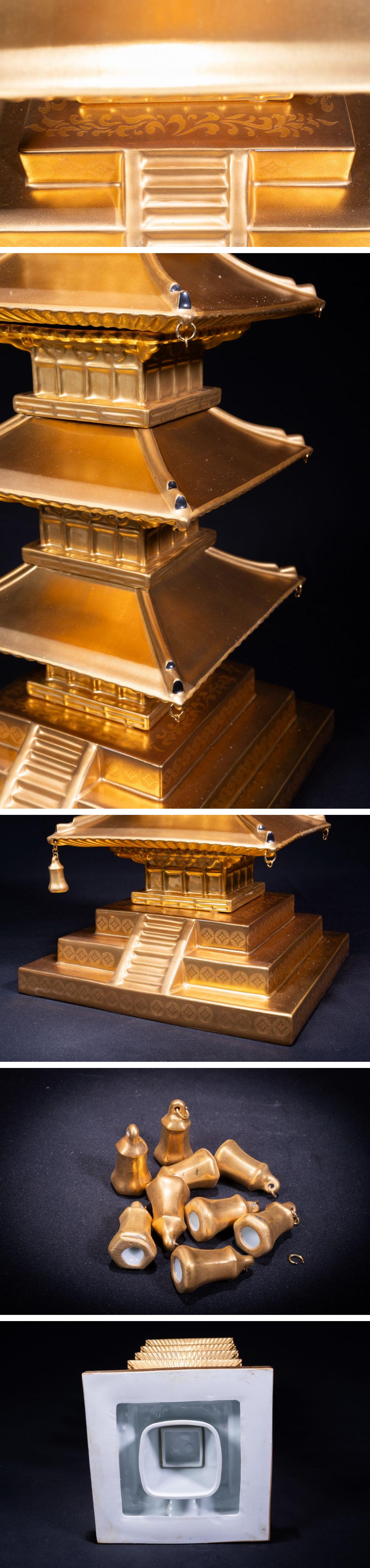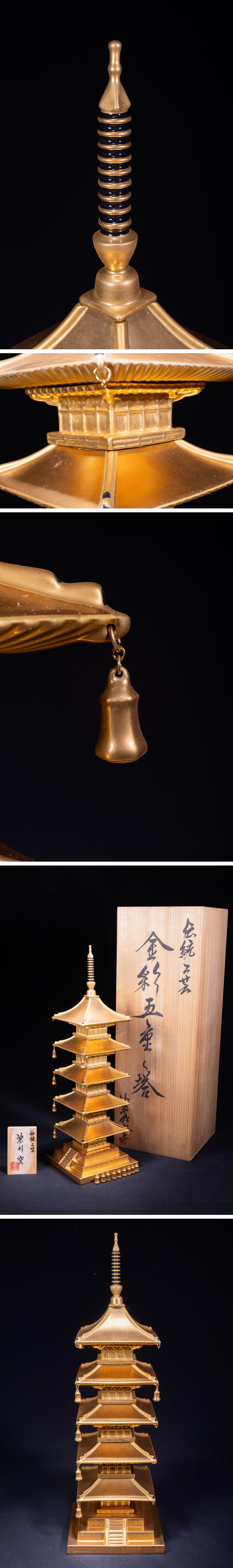 【珍品堂】1円から 伝統工芸 金彩 東大寺五重塔 豪華 置物 美品 共箱 木箱 H64.2cm N-A31BZ-SR1 收藏