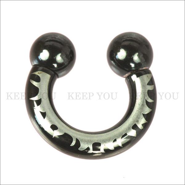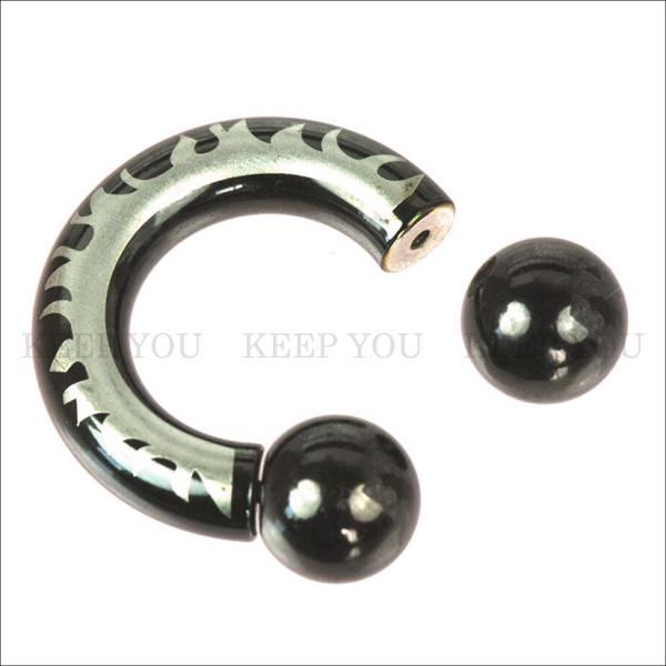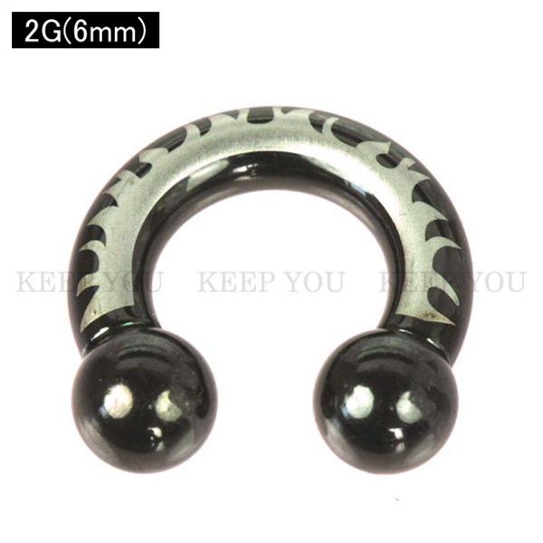 サーキュラーバーベル ブラック トライバル 2GA(6mm) 黒色 ブラックカラー デザイン CBR ボール ボディピアス ボディーピアス 2ゲージ┃ 收藏