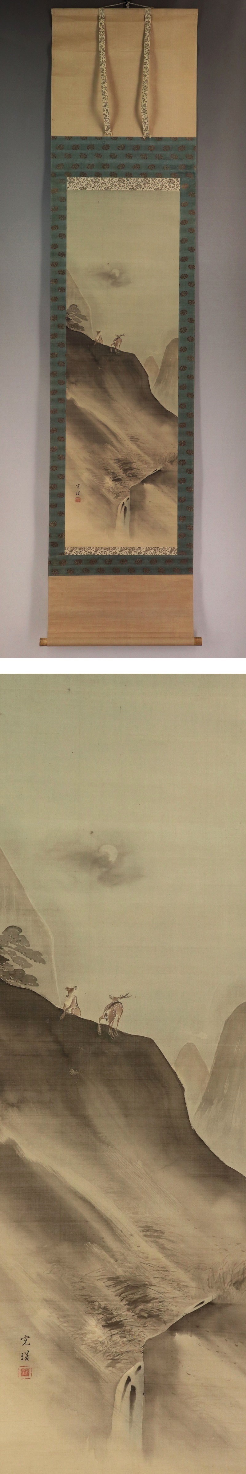 | №2110075【真作】西山完瑛【月下双鹿図】◆絹本◆合箱◆掛軸 | |
