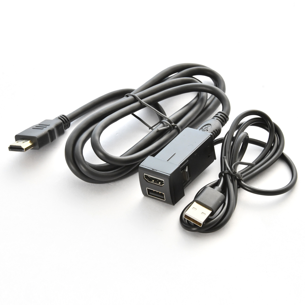| 空いているスイッチホールに HDMIポート・USBポート(Type-A)を増設して 充電・ミラーリングなど可能にします! HDMI配線:約1470mm、USB配線:約950mm 【確認事項】 ※必ずスイッチホールの形状・ナビに接続する端子形状をご確認ください ※コピーガード等がかかっている動画はミラーリングする事はできません |