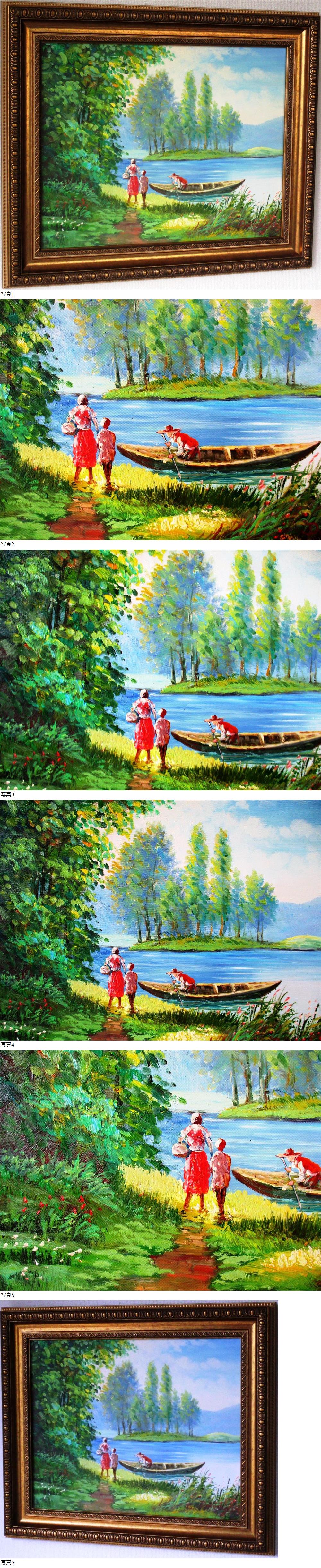絵画 油絵 油彩 風景画 帰宅の小舟を待つ母娘 F6 WG186 2月特別価格での出品です。 この機会にいかがですか。 收藏