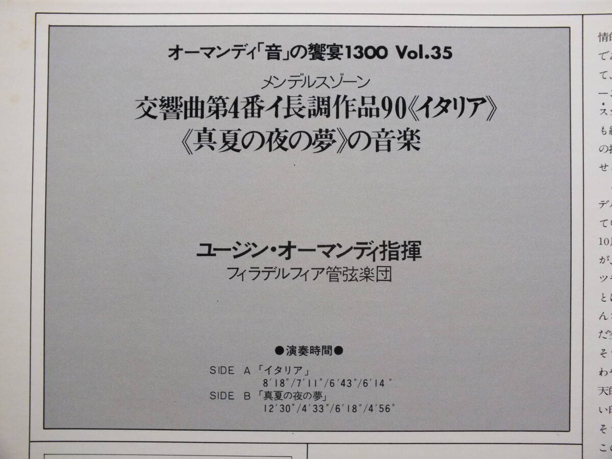 | LP 13AC 135 ユージン・オーマンディ メンデルスゾーン 交響曲 イタリア 真夏の夜の夢 【8商品以上同梱で送料無料】2501 | |||||