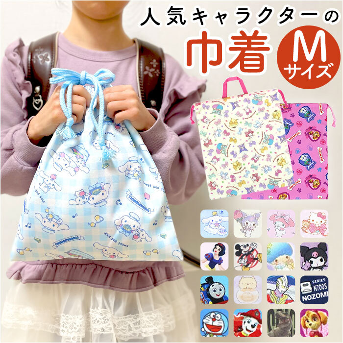 | 商品説明 | ・・給食やお昼ご飯に必要なアイテムの収納にぴったり。コンパクトな巾着(Mサイズ)が登場。 ・【開閉がスムーズな巾着型】 ・サイドの巾着紐をキュッと絞るだけ!お子さまでも簡単に開閉が可能。中身が飛び出すこともなく安心。 ・【友達とお揃いでも大丈夫】 ・内側のタグに名前を記入できるから、友達との取り違いを防げるのが嬉しい! ・【お手入れラクラク】 ・汚れが気になったら手洗いOK。いつも清潔をキープ。 ・【新学期準備におすすめ】 ・お気に入りがきっと見つかる!キャラクターの絵柄を全面にプリントしたデザイン。新生活の準備アイテムにリストアップ☆ |