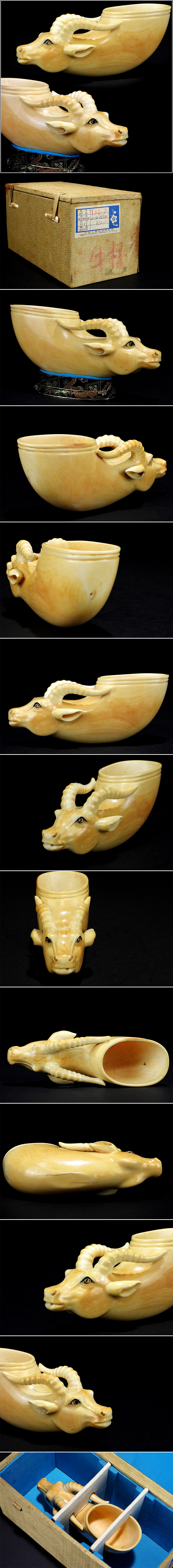 【騰立】中国美術 天然素材 細工彫刻 牛杯 水盂■1374w10 收藏