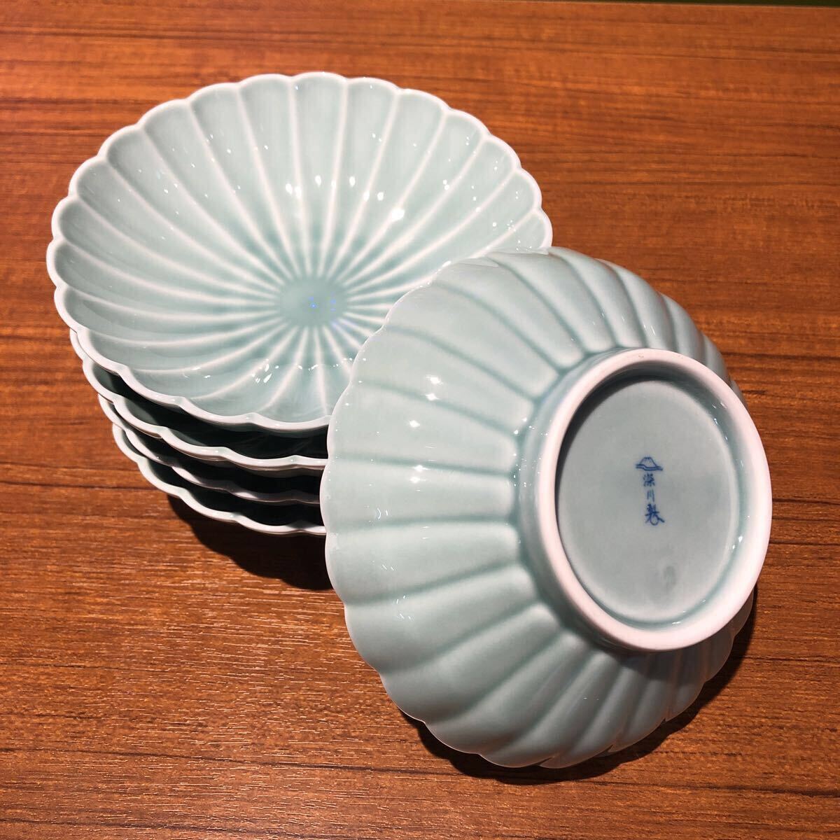 〈送料無料〉深川製磁 青磁 小付揃 菊割 小鉢 小皿 取皿 盛鉢 シンプル 深川 深川製 收藏