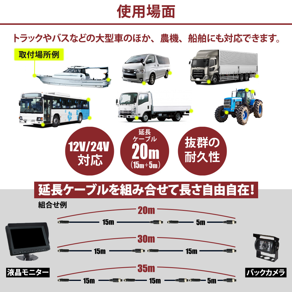 7インチ オンダッシュ トラック モニター バックカメラ セット 赤外線 防水 広角 暗視機能付 12/24V対応 トラック車載 船舶 船 收藏