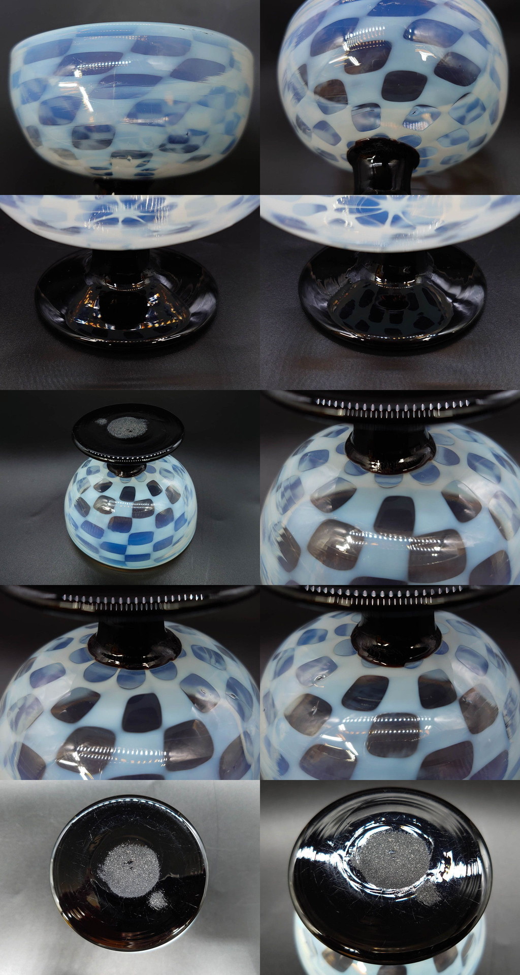 R-082880 大正期 碗型 乳白 市松模様 エナメル脚 温かみのある色合いが可愛らしい氷コップ(グラス、硝子、和ガラス) 收藏