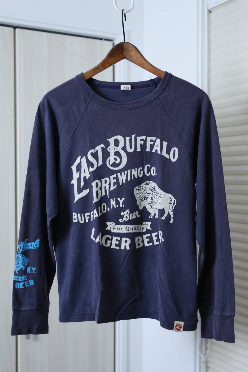 日本製MWS ユーズド加工プリント長袖ラグランTシャツ