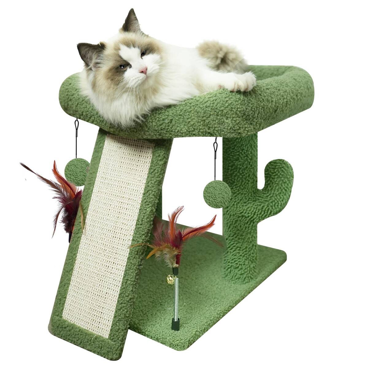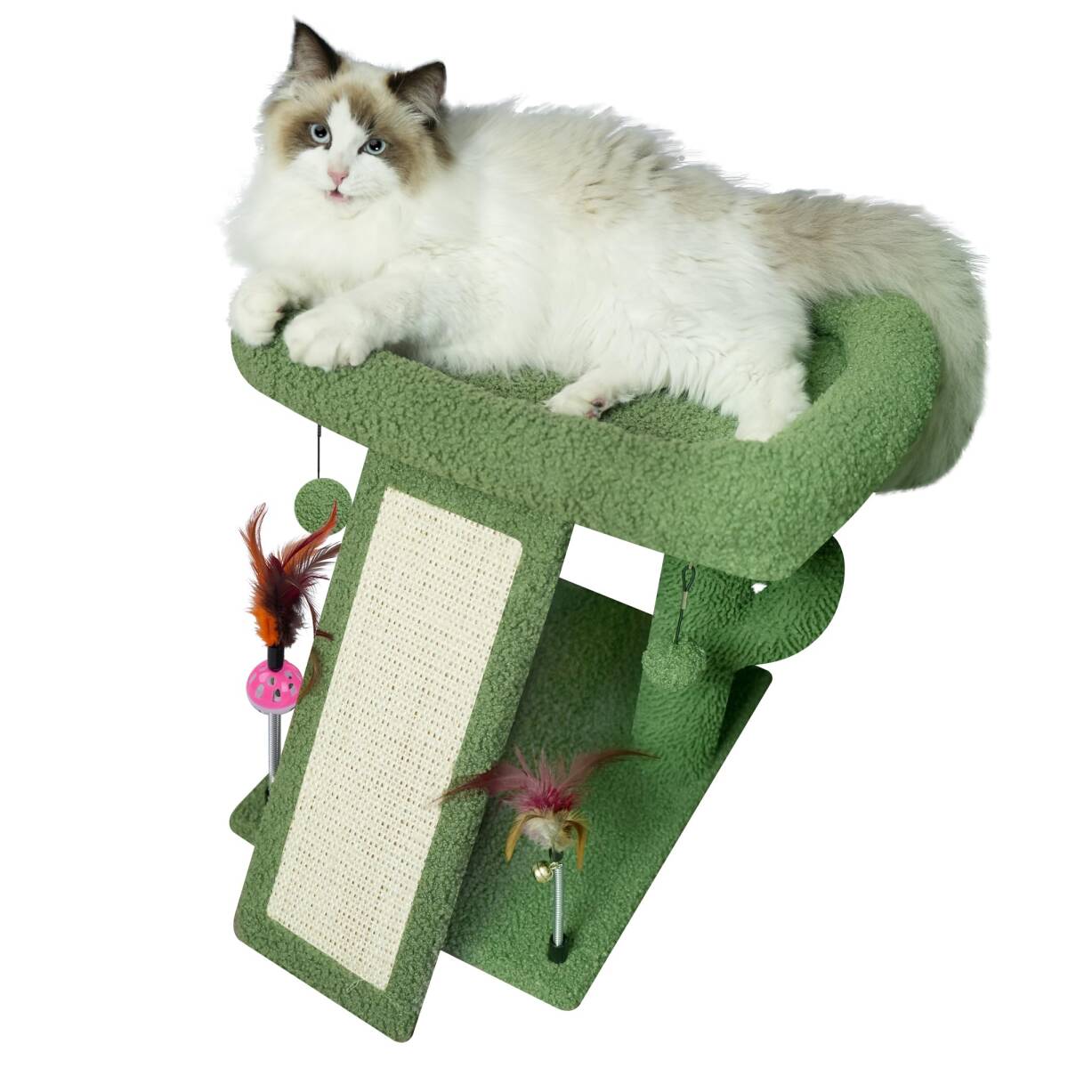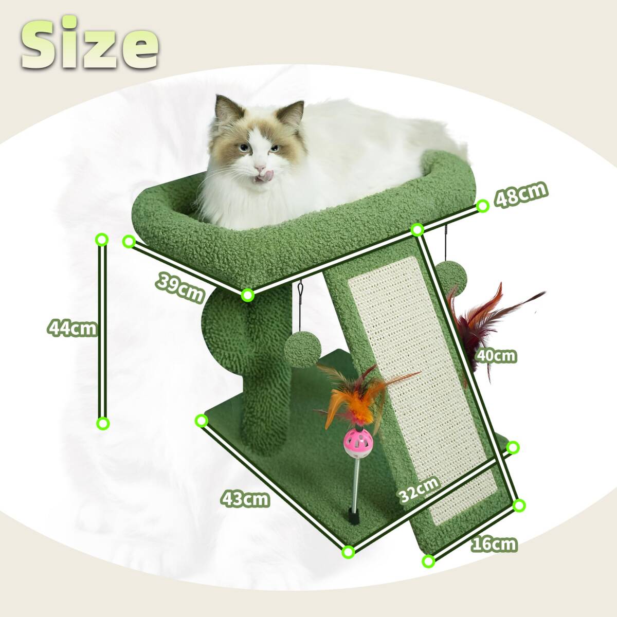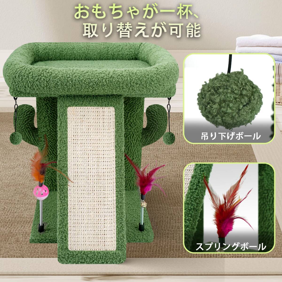 麻紐 猫タワー 安定 コンパクト 爪とぎ キャットタワー 省スペース 据え置き おもちゃつき TINWEI 44CM高さ (グリー 收藏