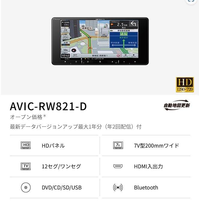1,AVIC-RW821-D(パイオニア製7インチワイド幅200mmカーナビ)