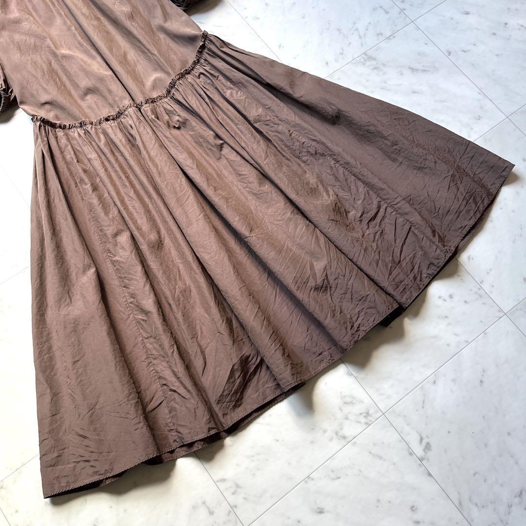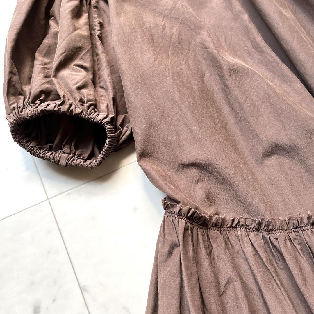 美品 トゥモローランドコレクション TOMORROWLAND collection ロングワンピース 半袖 コットン シルク 綿 絹 フレア ブラウン 茶 34 收藏