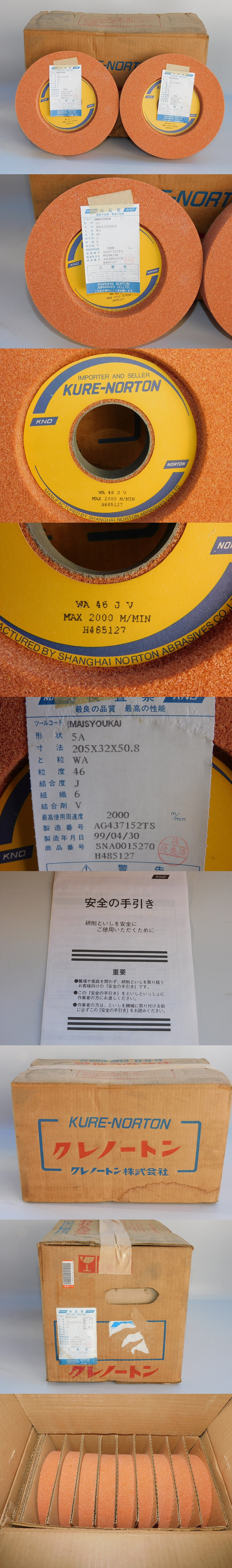 【e5667/9個入り/送料無料】クレノートン 砥石 205×32×50.8 5A WA 46 J 6 V 2000m/min 最良の品質 最高の性能 未使用 保管品 美品 新品 收藏