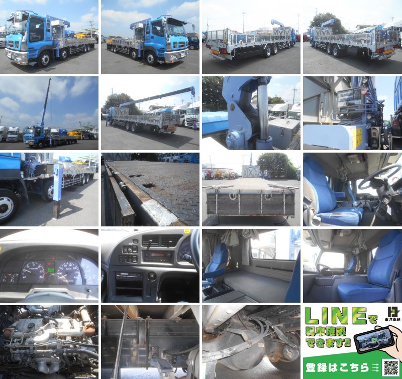 クレーン付平ボディ 上物:タダノクレーン(500系) 上物同年式 4段クレーン ラジコン付(無線) フックイン 2.9t吊 4軸低床 リーフサス 積載11.6t 荷台寸法:865×234×45 荷台床:鉄板張り アオリ5方開 内フック・ロープ穴 鳥居工具箱付 380馬力 リターダー付 メッキパーツ 燃料タンク400L(200+200) ワンオーナー 走行14万km 7速ミッション 車検付(R8/9/2) タイヤサイズ:265/70R19.5 |