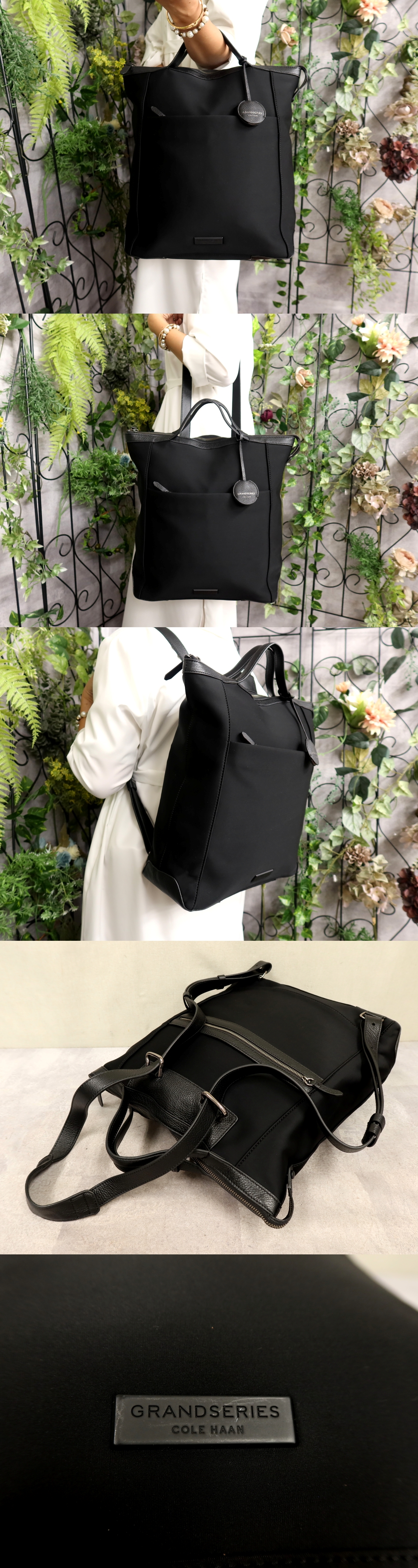 ●超美品●新品同様●コールハーン●メンズ●GRAND SERIES●ナイロン カーフ レザー 本革●3way ハンド バッグ●黒●SV金具●A4●Js61128 收藏