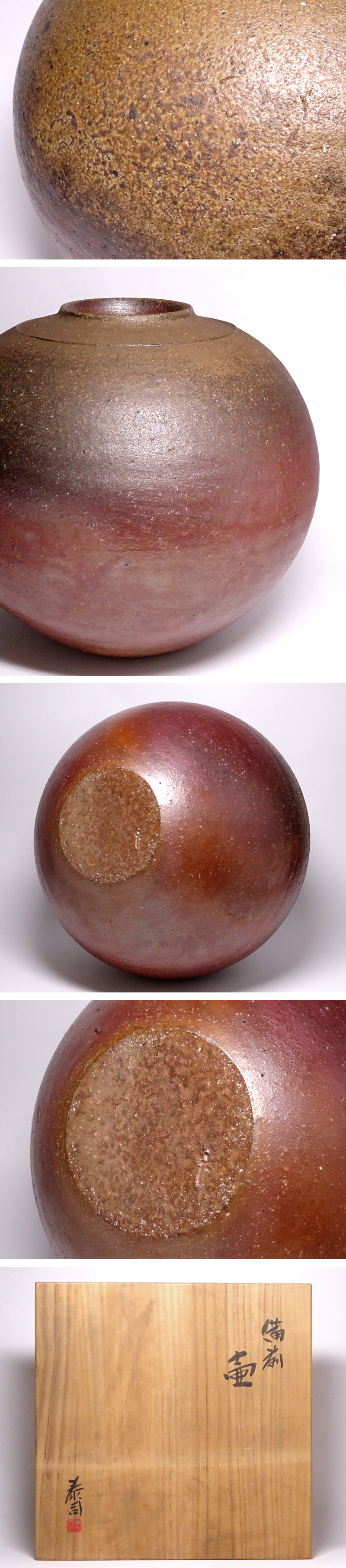 慶應◆日本工芸会正会員【森泰司】作 備前壷 目録添 共箱付 備前市指定無形文化財保持者 收藏