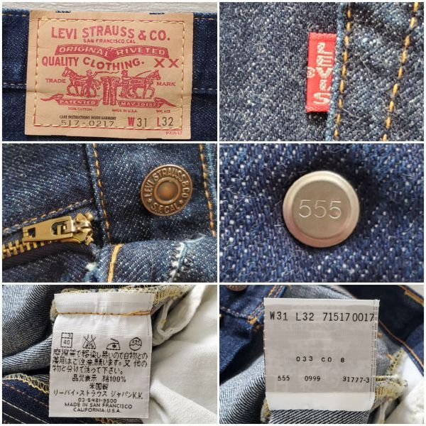 Levisリーバイス■美品 1999年 USA バレンシア製 BigE 復刻 ブーツカット W31 L32 濃紺 コーンミルズ社製 プリシュランクデニム サドルマン 收藏