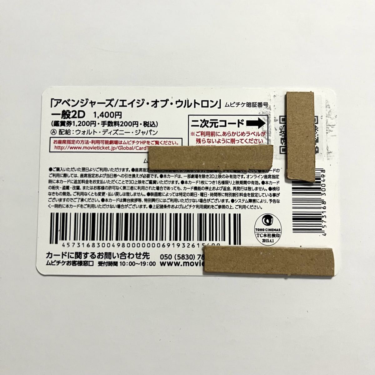 2015年 ムビチケ アベンジャーズ エイジ・オブ・ウルトロン 使用済み 映画 洋画 チケット 半券 前売り カード マーベル 收藏