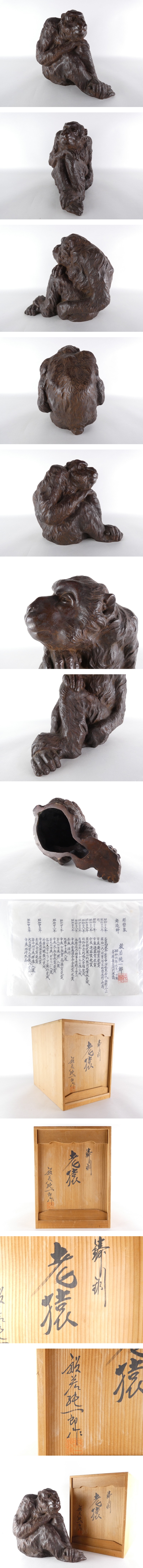 【都屋】般若純一郎「鋳銅 老猿」ブロンズ置物 共箱 幅 約28cm×約19cm 1016 zK33 收藏